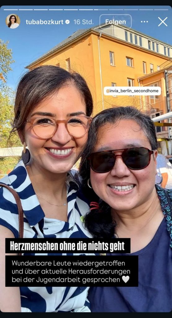 - Tuba Bozkurt (Abgeordnetenhaus, Bündnis 90/Die Grünen) besuchte den Stand persönlich – und überraschte mit einem positiven Feedback zur „Feelings“-Podcast-Folge mit Kurt Krömer, in der Susanne Chenaoui als Leiterin des JMD die Arbeit des Jugendmigrationsdienstes vorstellte.